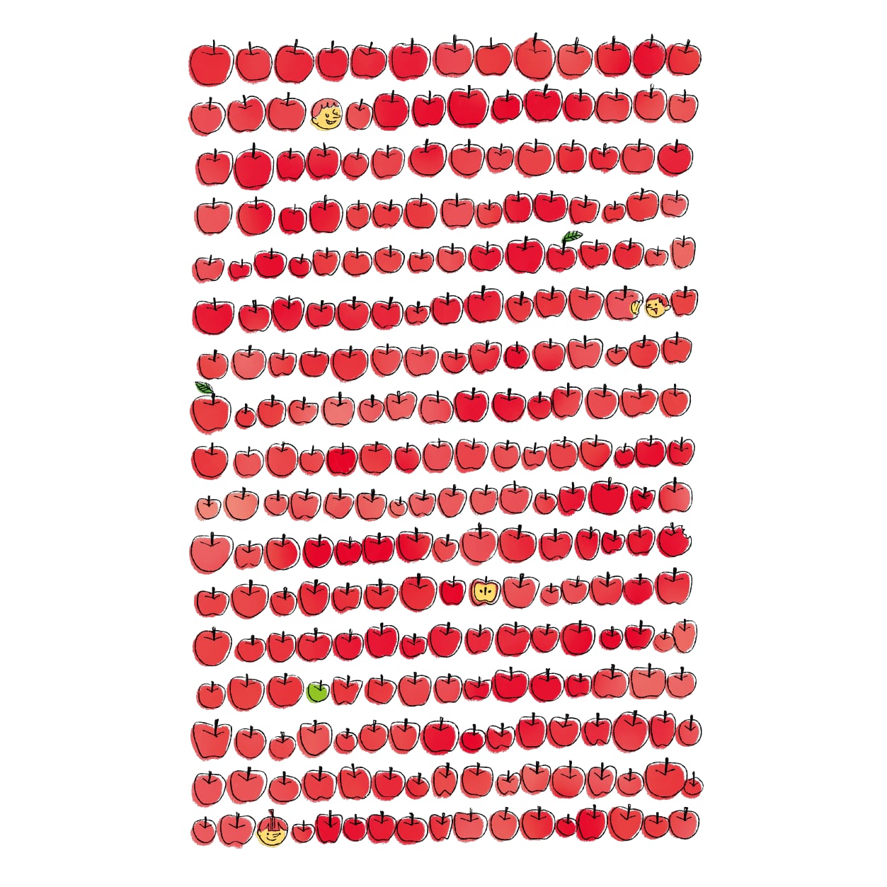 一つ一つ手描きした、小さなりんごがぎっしり詰まってます。